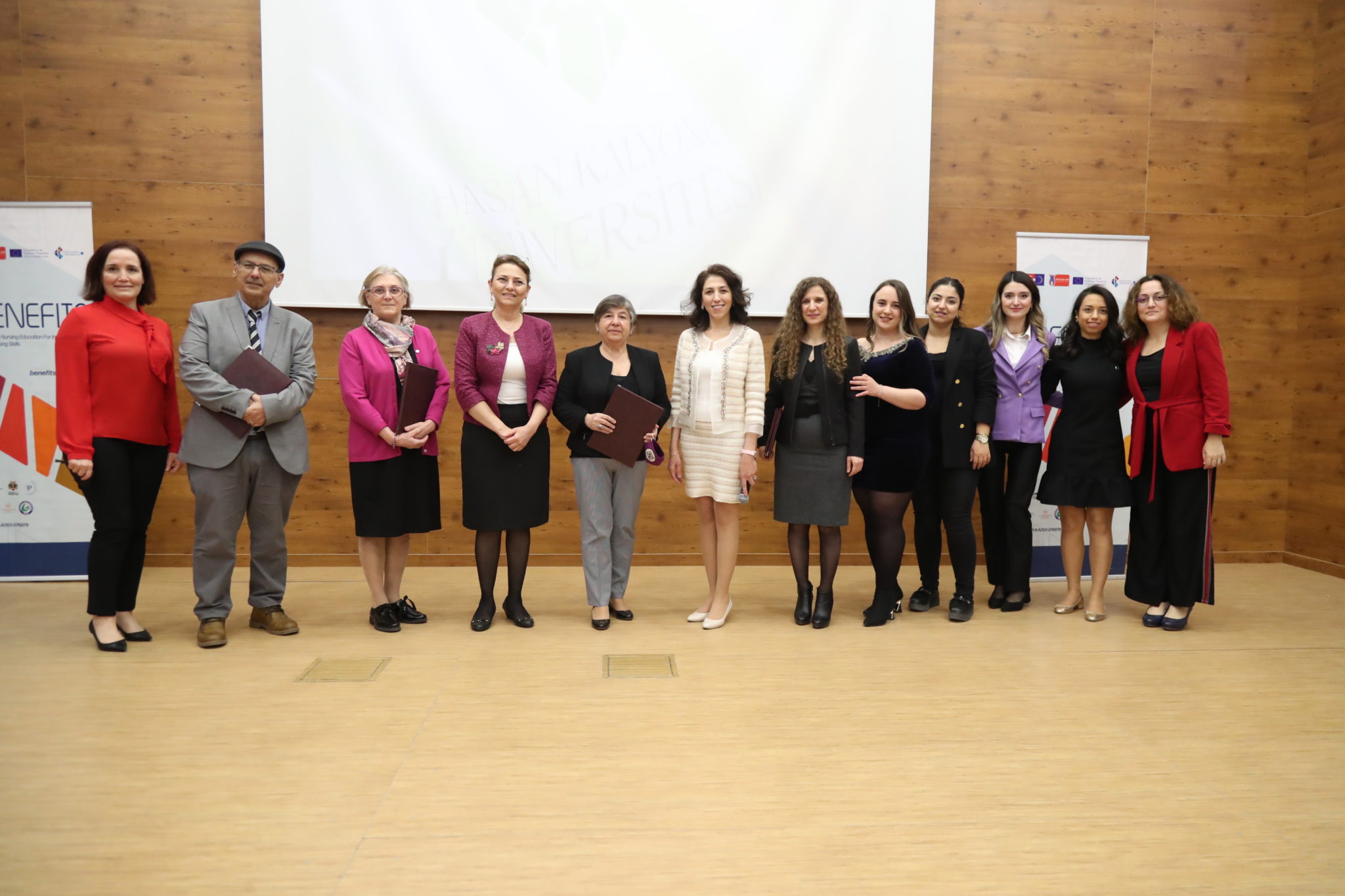 Hasan Kalyoncu Üniversitesi (HKÜ) Sağlık Bilimleri Fakültesi, Hemşirelik Bölümü Öğretim Üyeleri Prof. Dr. Ayla Yava ve Doç Dr. Betül Tosun’un yürütücü olarak görev aldığı BENEFITS (Better & Effective Nursing Education for Improving Transcultural Nursing Skills) isimli ERASMUS+ projesinin sonuçlarının paylaşılması ve yaygınlaştırılması amacıyla düzenlenen “Kültürlerarası Hemşirelik Becerilerini Geliştirmek İçin Daha İyi ve Etkili Hemşirelik Eğitimi” Sempozyumuna; Belçika, Çek Cumhuriyeti, Macaristan, İspanya, Slovenya ve Türkiye’den katılan 15 bilim insanı, yüz yüze ve çevrimiçi sunumlar gerçekleştirdiler. Giresun Üniversitesi ve Gaziantep İl Sağlık Müdürlüğü’nün işbirliği ile gerçekleştirilen BENEFITS projesinin son aşamasında düzenlenen Sempozyumun açılış konuşmalarını; HKÜ Rektör Yardımcısı Prof. Dr. Mehmet Lütfi Yola, Sağlık Bilimleri Fakültesi Dekanı Prof. Dr. Kezban Bayramlar, Prof. Dr. Ayla Yava, Doç. Dr. Betül Tosun ve Gaziantep İl Sağlık Müdürü Dr. Ümit Mutlu Tiryaki yaptı.